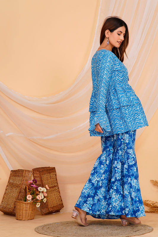 Stylish Blue Floral Cotton Sharara/ Plazzo Set