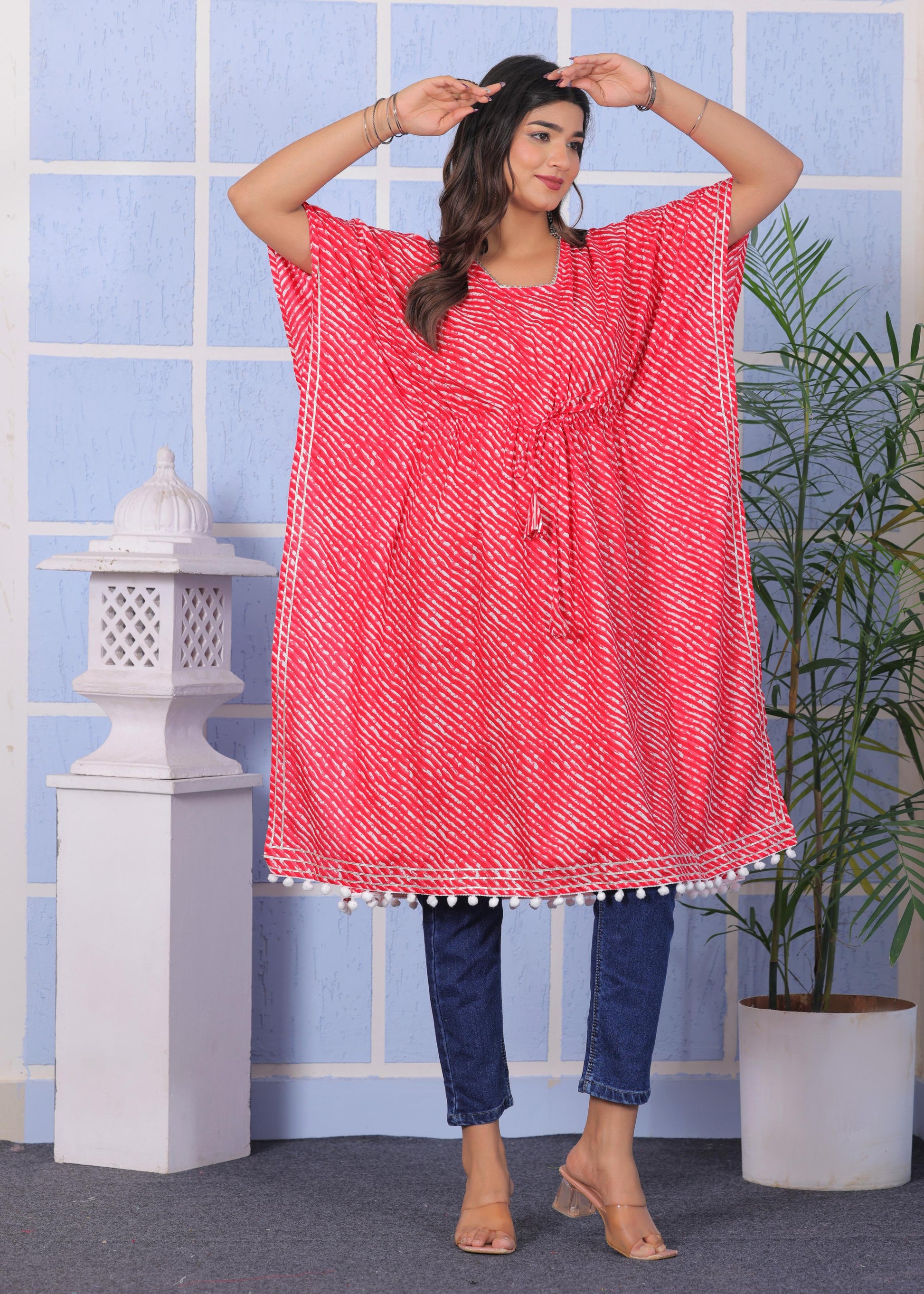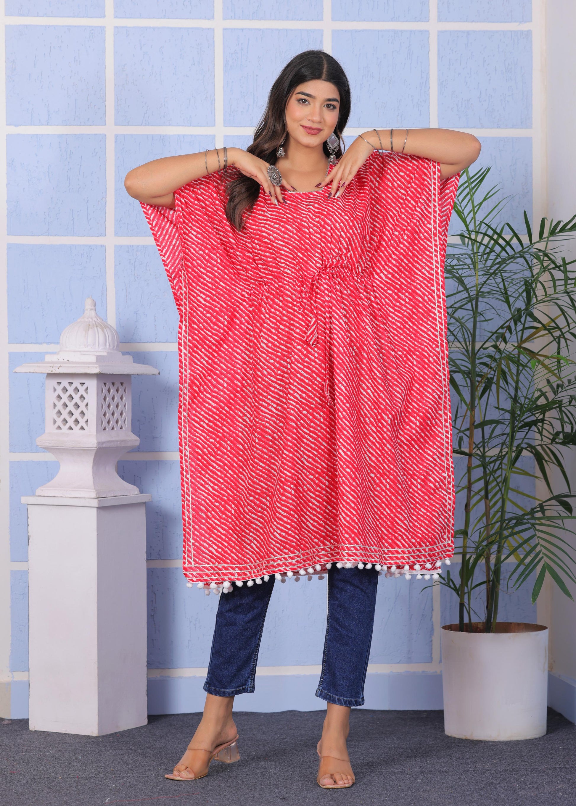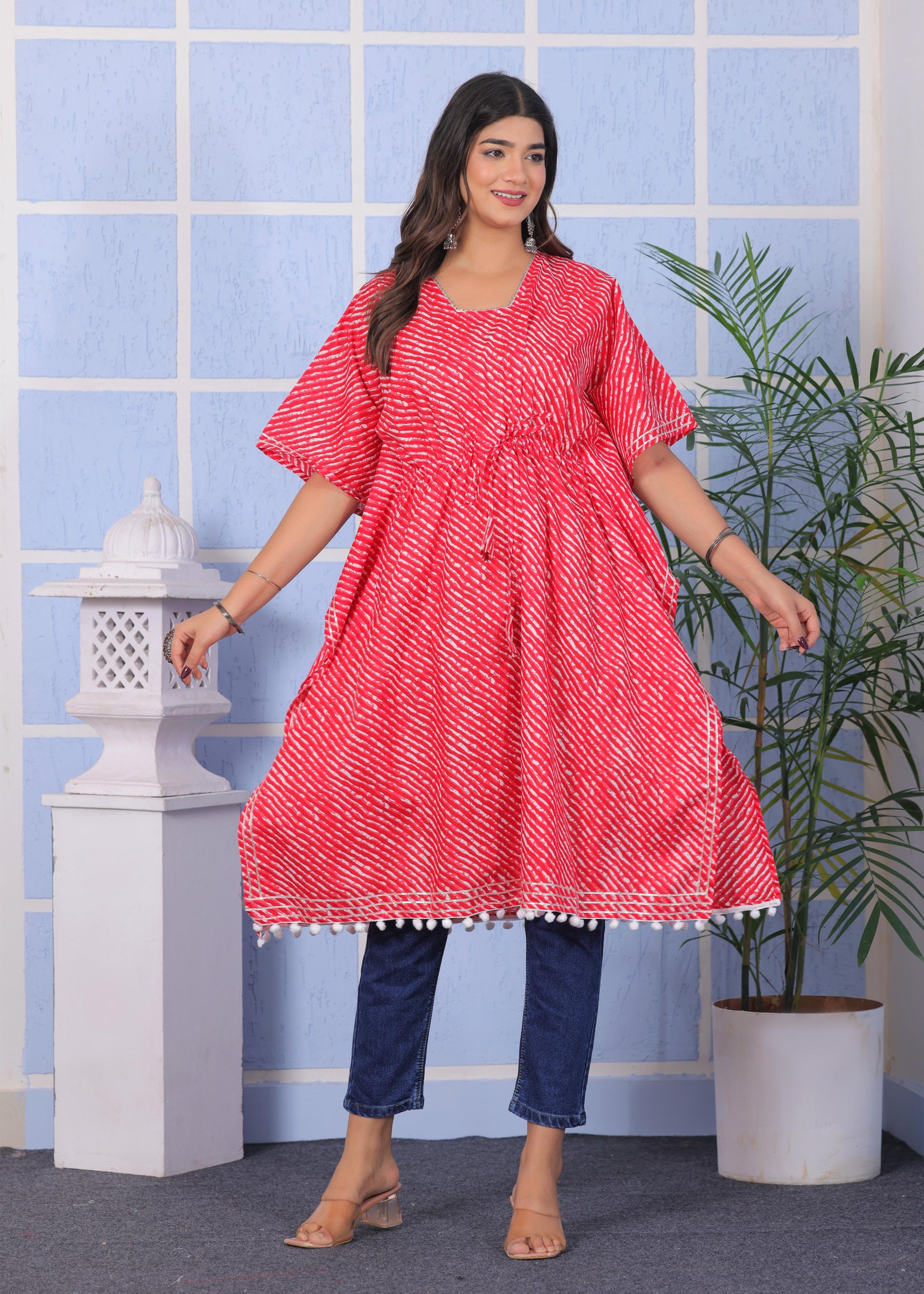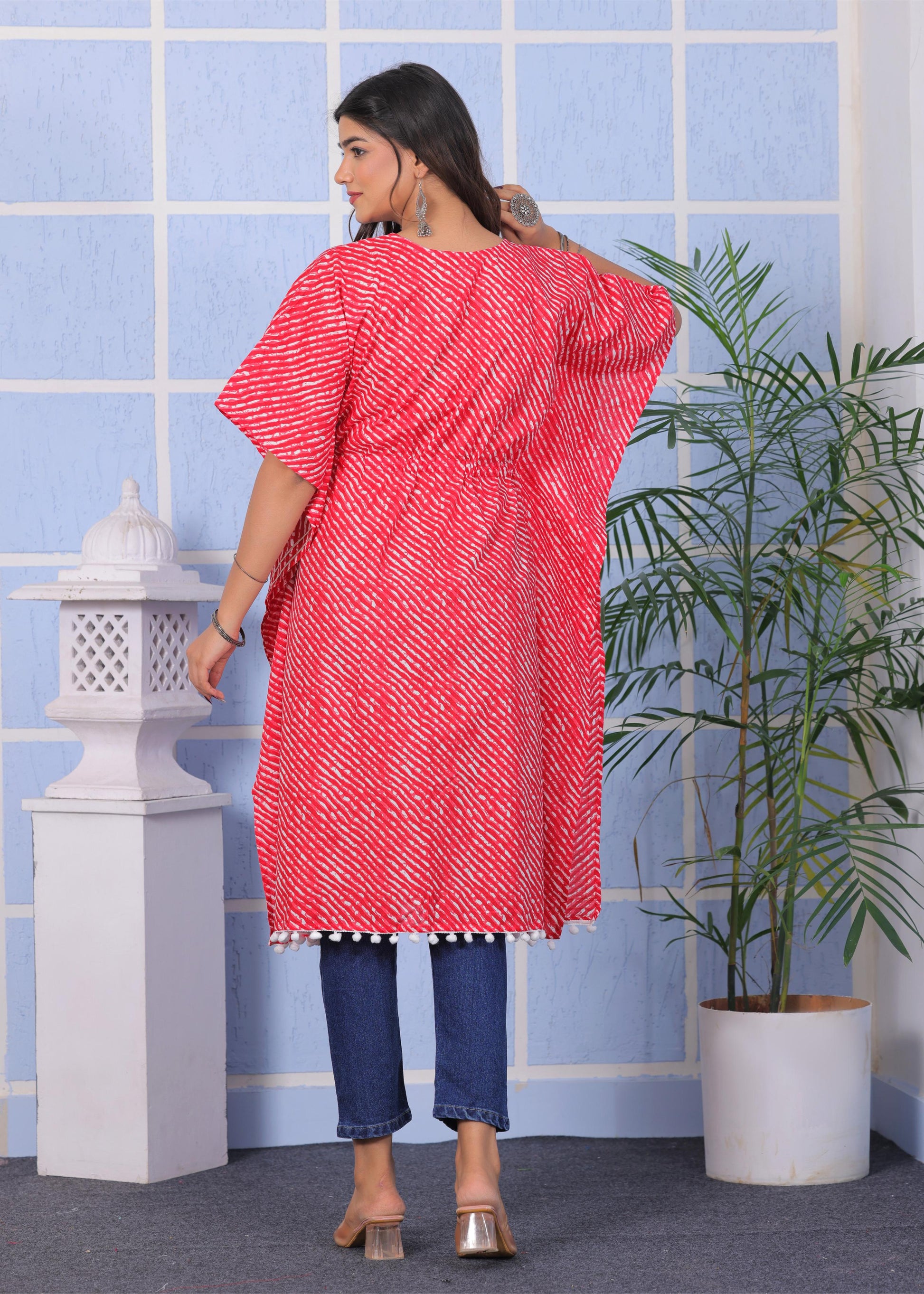 Trendy Red Cotton Kaftan with Pom-Pom Detailing - Available in Multiple Sizes